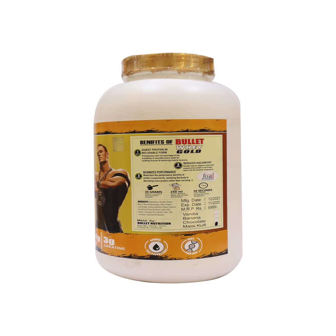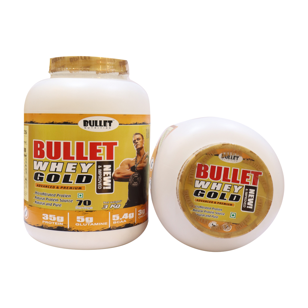 Unleash the power of muscle-building with Bullet Whey Gold 3kg. This premium protein supplement from Bullet Nutrition offers an abundant supply of high-quality whey, fueling your fitness journey with superior recovery and lean muscle support. Elevate your gains with Bullet Whey Gold 3kg – where strength meets satisfaction.